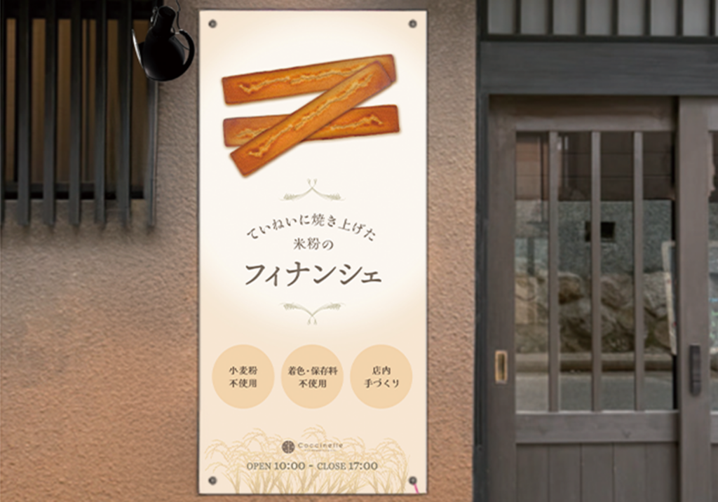 ・兵庫県の有馬温泉にある米粉フィナンシェ専門店の看板デザイン制作